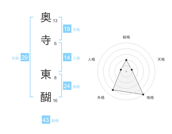 奥寺 東醐さんを姓名の画数から五運を鑑定