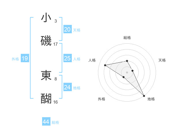 小磯 東醐さんを姓名の画数から五運を鑑定