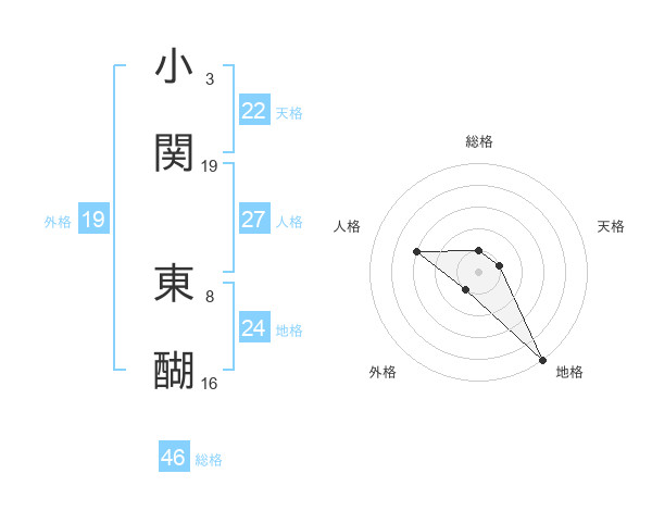 小関 東醐さんの総格は46画の1点!