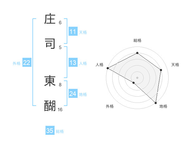 庄司 東醐さんを姓名の画数から五運を鑑定