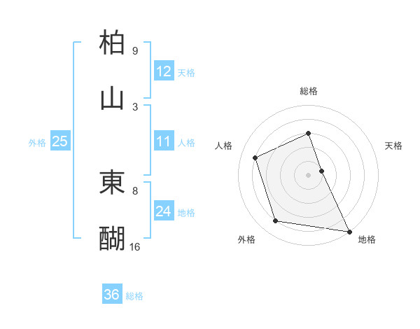 柏山 東醐さんの地格は24画の5点!