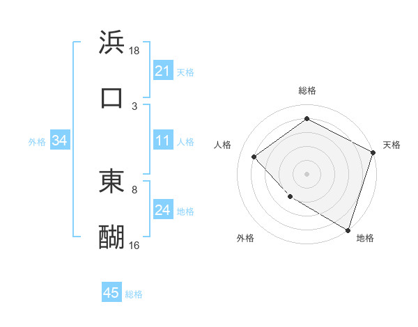 浜口 東醐さんの総格は45画の4点!