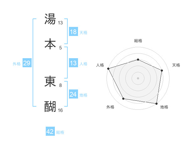 湯本 東醐さんを姓名の画数から五運を鑑定