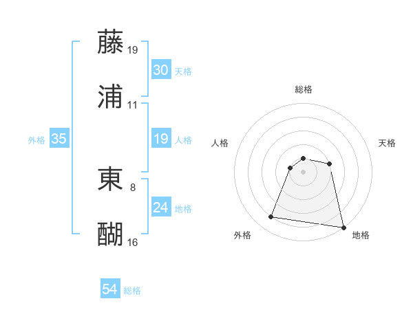藤浦 東醐さんの総格は54画の1点!