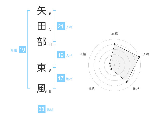 矢田部 東風さんを姓名の画数から五運を鑑定