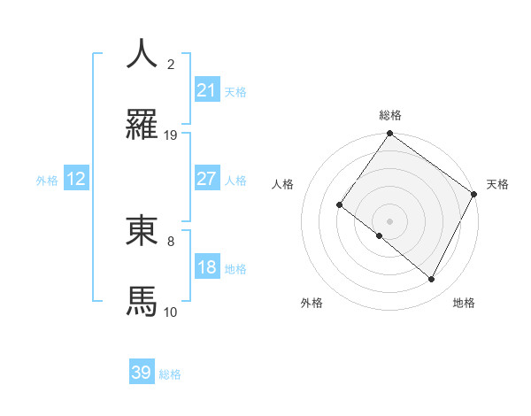 人羅 東馬さんの総格は39画の5点!