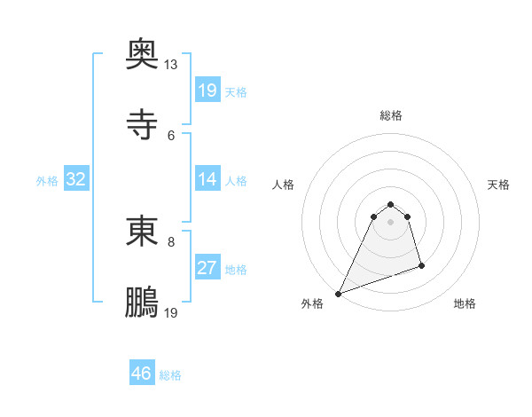 奥寺 東鵬さんの外格は32画の5点!