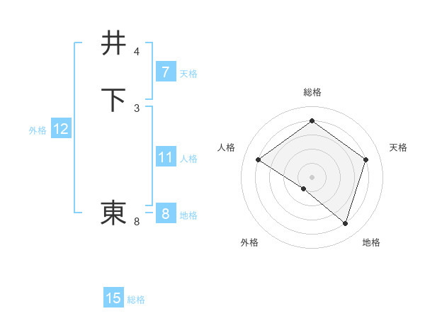 井下 東さんの総格は15画の4点!