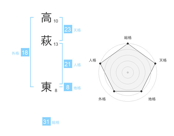 高萩 東さんの天格は23画の5点!