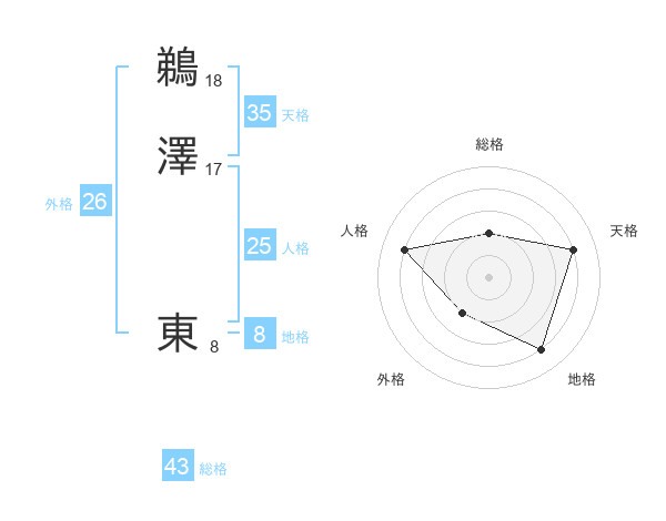 鵜澤 東さんを姓名の画数から五運を鑑定