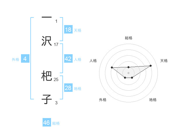 一沢 杷子さんを姓名の画数から五運を鑑定