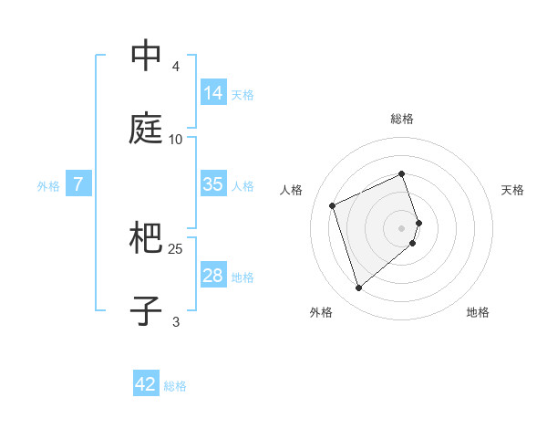 中庭 杷子さんを姓名の画数から五運を鑑定