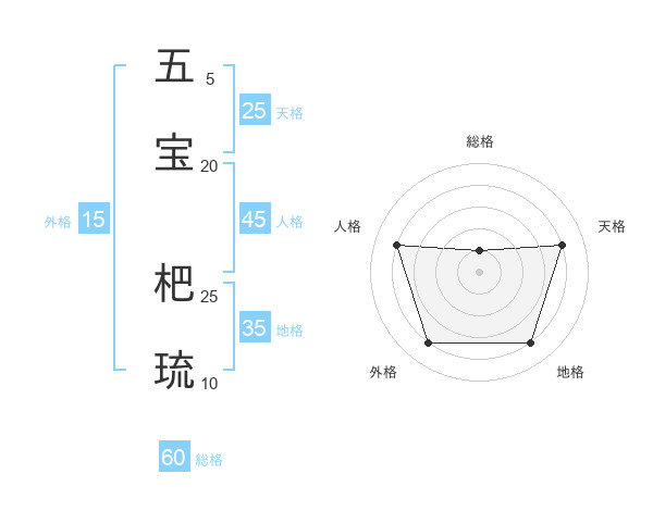 五宝 杷琉さんの総格は60画の1点!