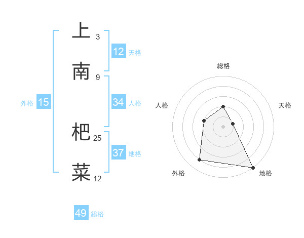 上南 杷菜さんを姓名の画数から五運を鑑定