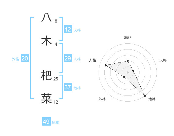 八木 杷菜さんの総格は49画の2点!