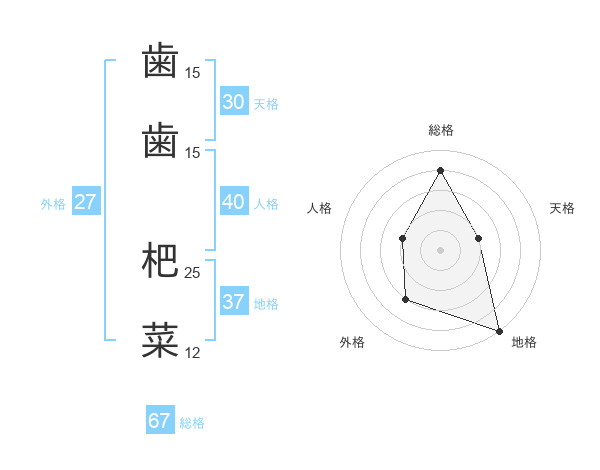 歯歯 杷菜さんの総格は67画の4点!