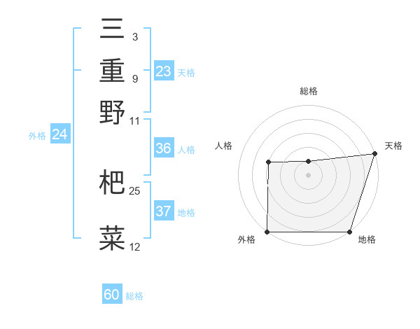 三重野 杷菜さんの総格は60画の1点!