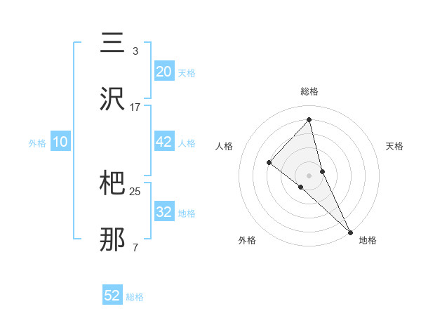 三沢 杷那さんを姓名の画数から五運を鑑定