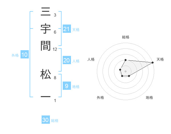 三宇間 松一さんの総格は30画の2点!