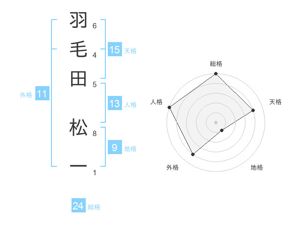 羽毛田 松一さんを姓名の画数から五運を鑑定
