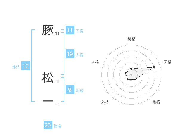 豚 松一さんの総格は20画の1点!