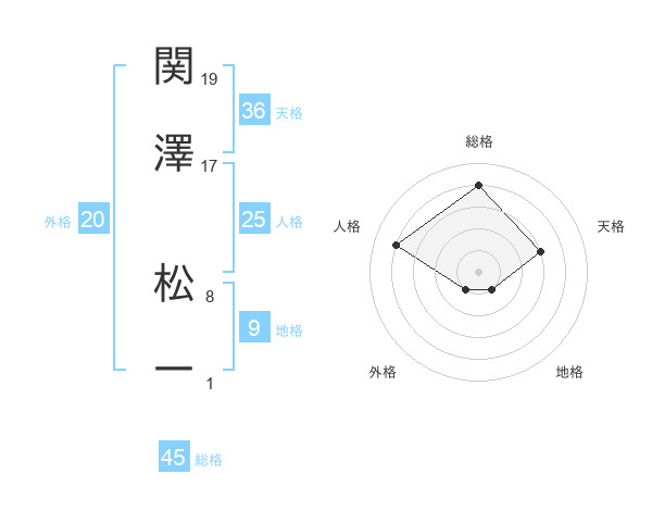 関澤 松一さんの総格は45画の4点!