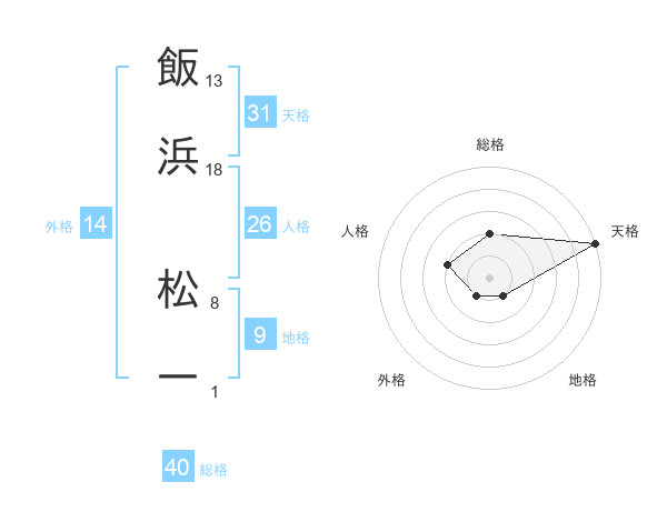 飯浜 松一さんの総格は40画の2点!