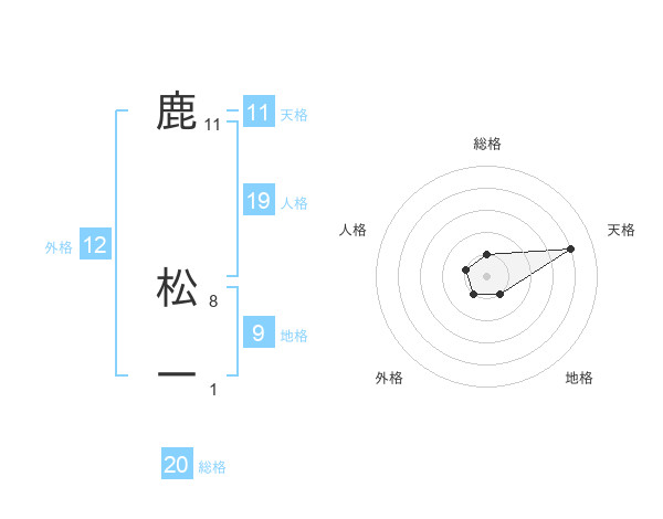 鹿 松一さんの総格は20画の1点!