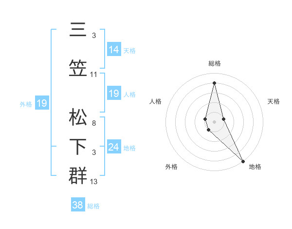 三笠 松下群さんを姓名の画数から五運を鑑定