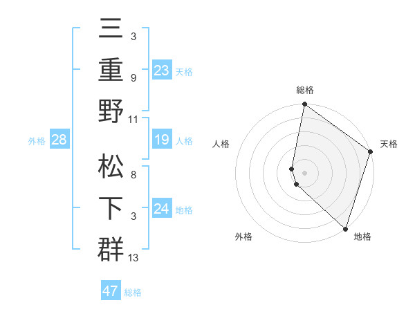 三重野 松下群さんの総格は47画の5点!