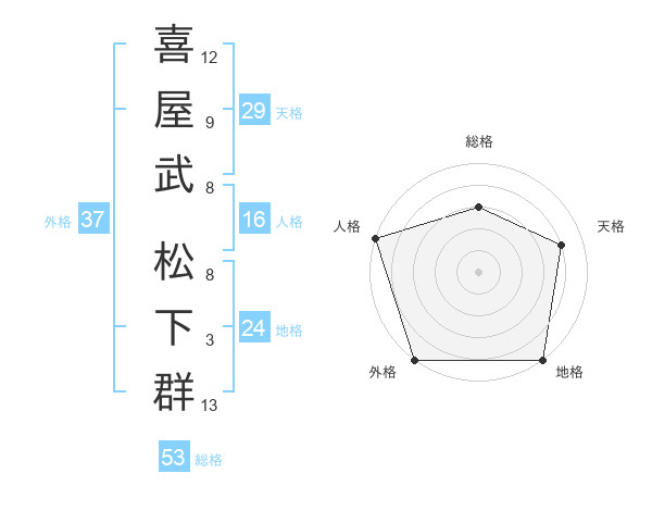 喜屋武 松下群さんを姓名の画数から五運を鑑定
