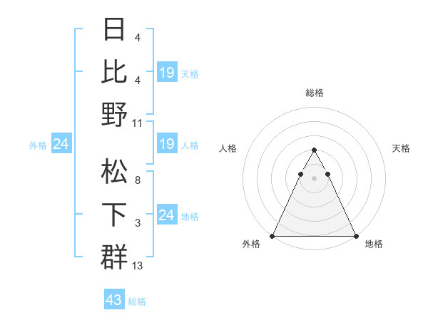 日比野 松下群さんを姓名の画数から五運を鑑定