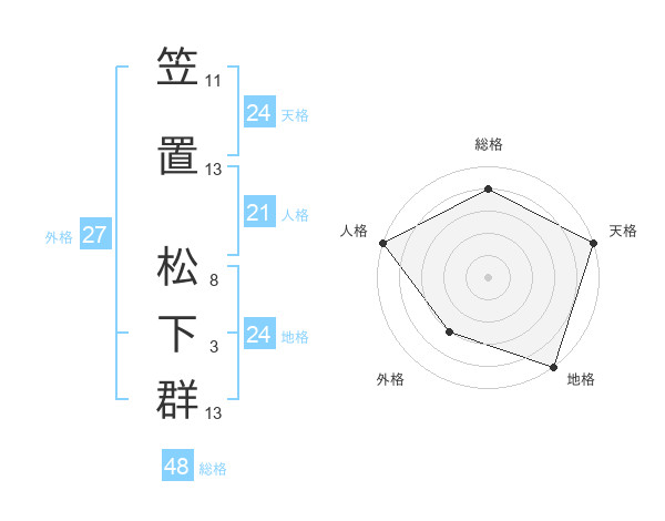 笠置 松下群さんを姓名の画数から五運を鑑定