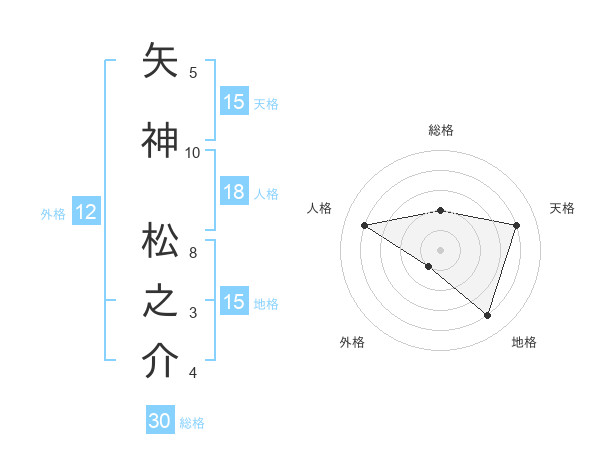 矢神 松之介さんの総格は30画の2点!