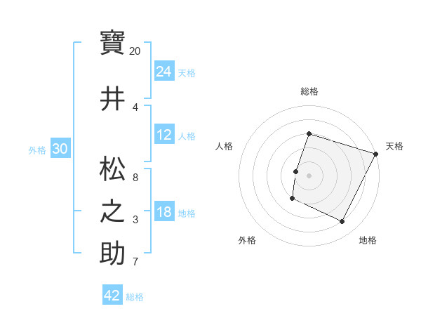 寶井 松之助さんの天格は24画の5点!