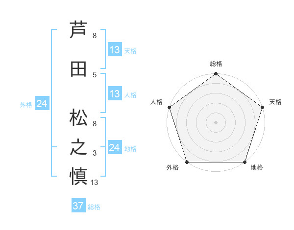 芦田 松之慎さんの総格は37画の5点!