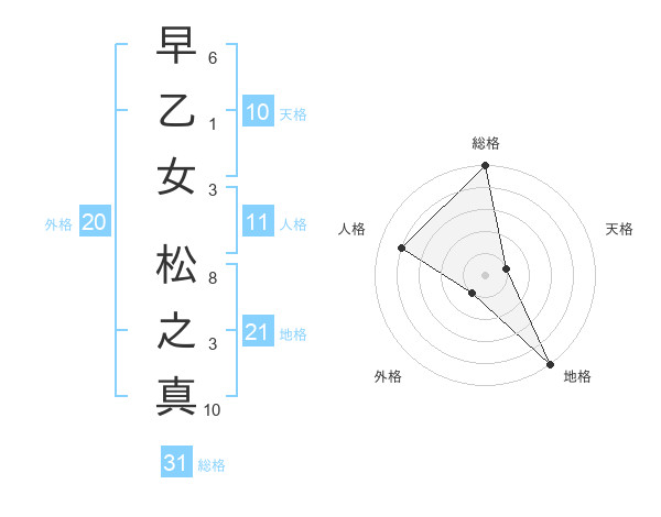 早乙女 松之真さんを姓名の画数から五運を鑑定