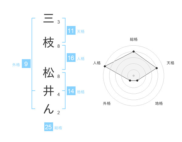 三枝 松井んさんの総格は25画の4点!