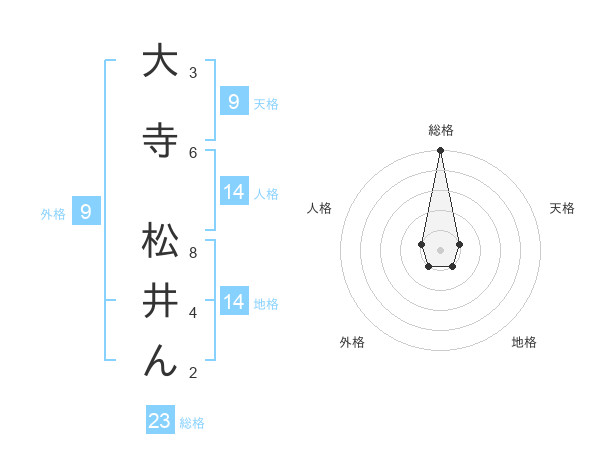 大寺 松井んさんを姓名の画数から五運を鑑定