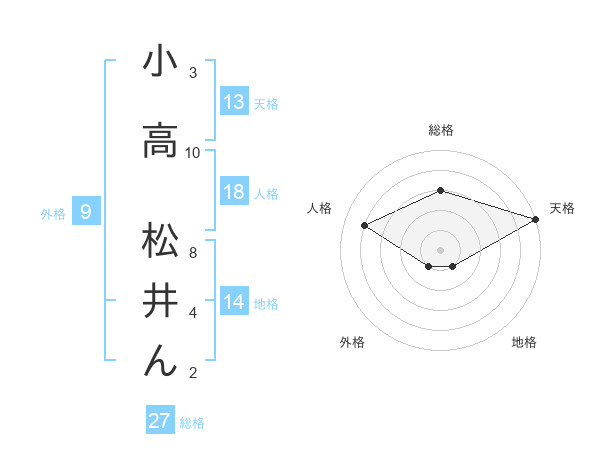 小高 松井んさんの総格は27画の3点!