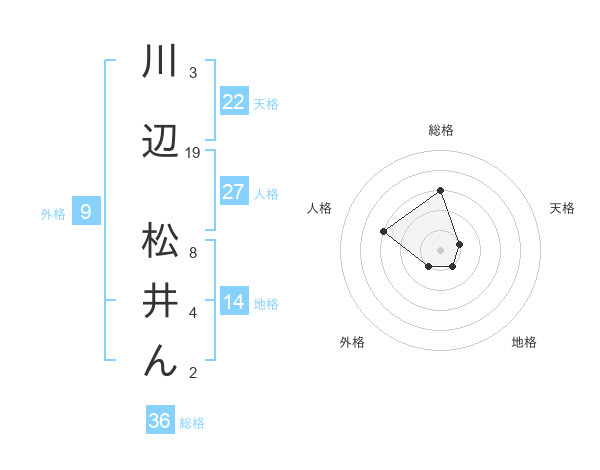川辺 松井んさんの天格は22画の1点!