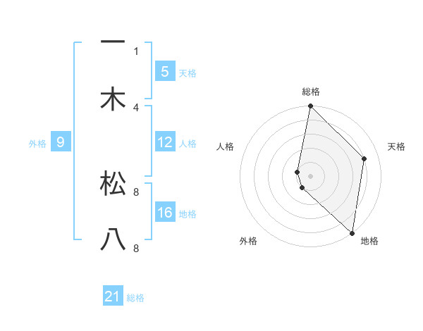 一木 松八さんの総格は21画の5点!