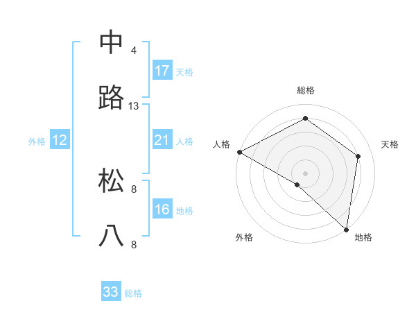中路 松八さんの天格は17画の4点!