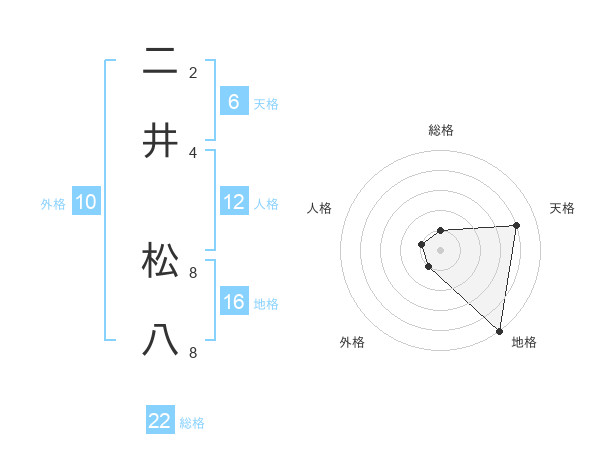 二井 松八さんの総格は22画の1点!