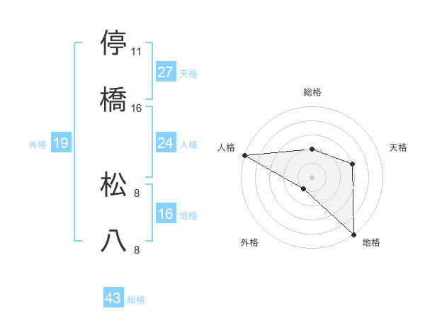 停橋 松八さんの人格は24画の5点!