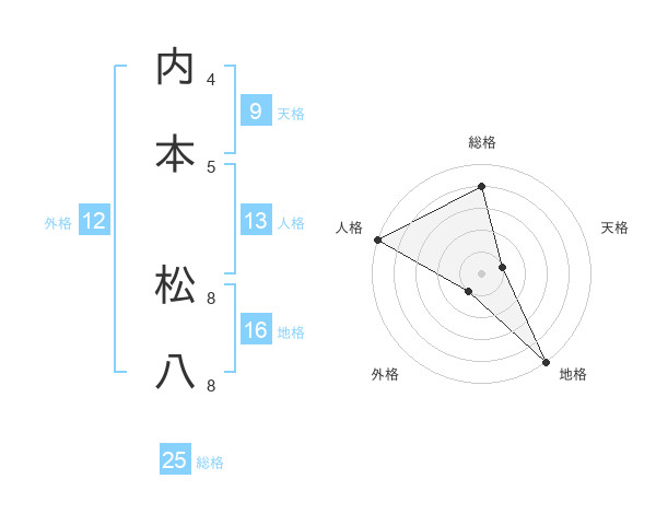 内本 松八さんの総格は25画の4点!