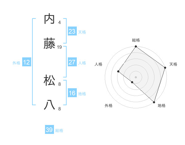 内藤 松八さんの総格は39画の5点!