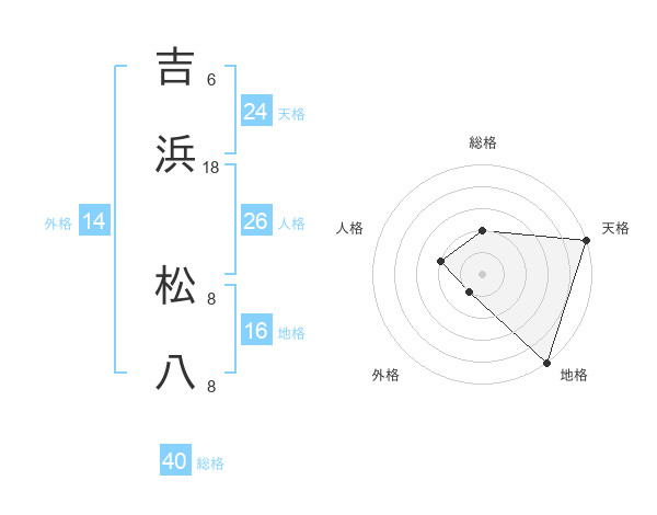 吉浜 松八さんの総格は40画の2点!