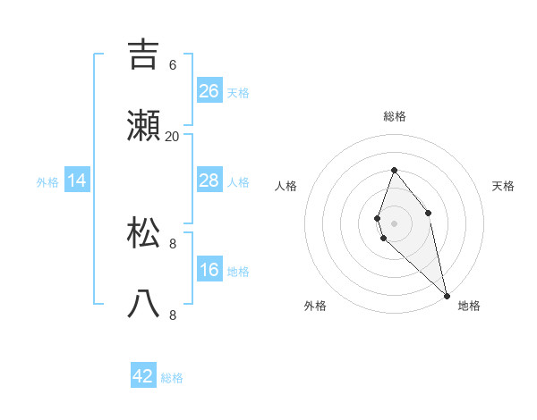 吉瀬 松八さんを姓名の画数から五運を鑑定