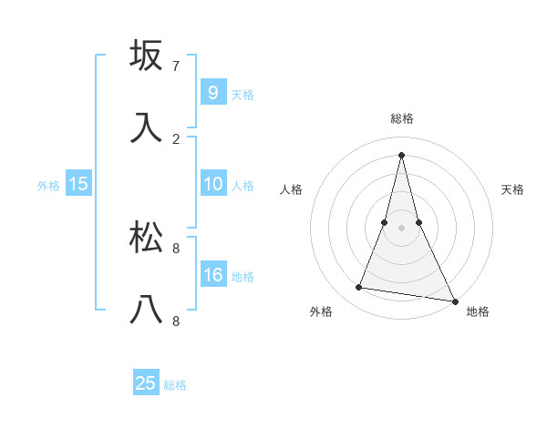 坂入 松八さんの総格は25画の4点!